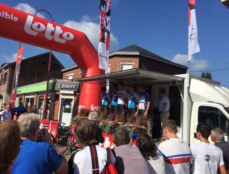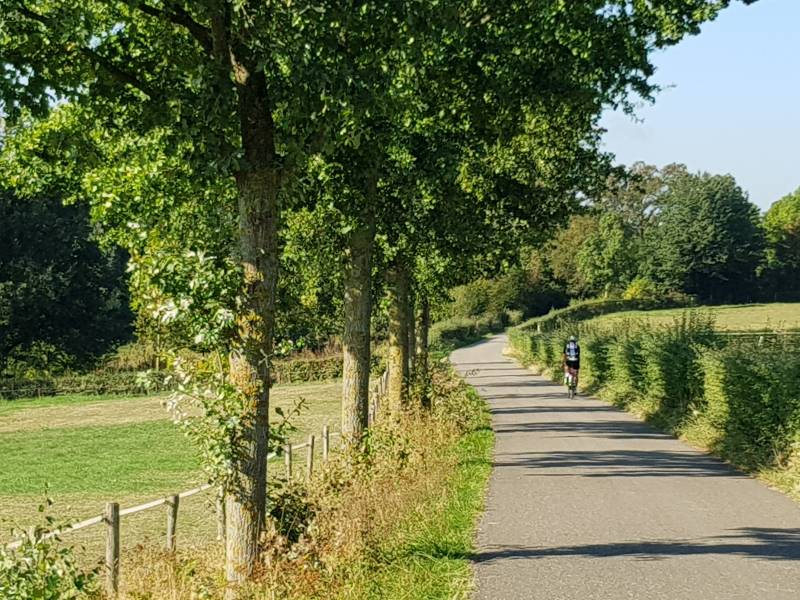 Woensdag 12 september, 5 man aan het vertrek dezelfde als die van zaterdag aangevuld met Nico. Marcel wil op tijd thuis zijn, dus een rit zonder te pauzeren. Alweer een heuvelachtige aanloop richting de Planck, waar Marcel schakelproblemen krijgt. Accu leeg, gelukkig kunnen we wel verder zij het dat hij op het binnenblad verder moet. Lusje om Aubel en dan richting Blegny. Hier is toevallig de ploegenvoorstelling bezig van de GP de Wallonië. (winnaar Jasper Stuyven). Na Blegny gaat het meestal bergaf. De laatste 40 km zijn vlak in een aangenaam tempo. In Maasmechelen zetten we Marcel af, keurig op tijd terug. 117 km 1000 HM