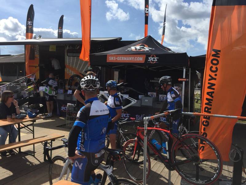 Zaterdag 18 september, 4 man aan het vertrek; Christian, Pieter. Marcel en Febian. Prima fietsweer, wel met de armstukken aan. Een ritje richting Duitsland. Allereerst via diverse smalle wegjes richting Merkelbeek. Daarna fietsen we richting Schinveld en zitten we iets later in de Schinveldse bossen. Net als vorig jaar blokkeren twee schotse runderen de weg. Dit keer niet van die met horens maar twee jonkies. Een witte en een bruine. Ach wat schattig je zou ze zo in een doosje willen doen en meenemen. Helaas kan dat niet, dus fietsen we rustig verder. In Duitsland aangekomen is het weer traditioneel draaien en keren en de weg zoeken. We fietsen o.a. langs de AWACS basis. Via Rimburg fietsen we Limburg weer binnen. Even later zitten we alweer in Kirchroa. Via het bedrijventerrein Avantis gaat het naar Simpelveld. Korte huls omhoog en daarna pauze bij de Bernardushoeve in Trintelen. In de veranda, buiten is het net iets te fris. Na de pauze zet de wegkapitein koers richting St. Geertruid of eigenlijk Libeek. Dit weekend de start en finish locatie van de MH2D. De broer van Marcel, ja die van SKS, heeft hier een stand, of eigenlijk een truck staan. Prima locatie voor z’n evenement waar al een prima sfeertje hangt, mede dankzij het voortreffelijke weer. Vele wielertoeristen zitten na te borrelen. Na de traktatie van een glaasje fris (met dank aan SKS) hervatten wij onze terugreis. Vlak met de wind wat meer in het voordeel. Afwisselend ritje 112 km 900 HM